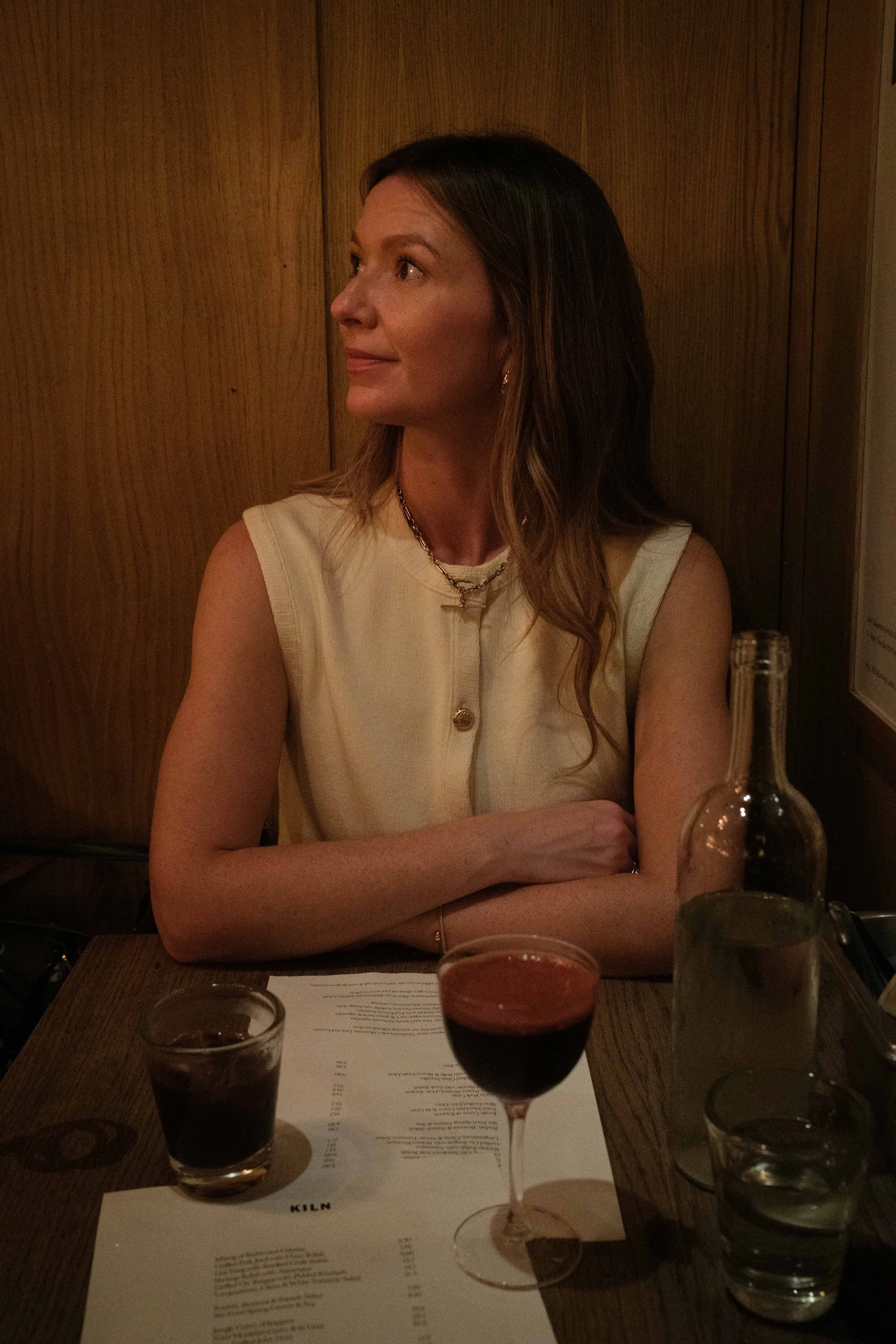 Downstairs, where we ended up sitting, is a different pace entirely. A smaller, more contained room with a handful of tables, dim lighting, and a calmer feel. You lose the theatre of the open kitchen, but in return, you get space to actually sit, talk, and enjoy the food without people brushing past you every few minutes.