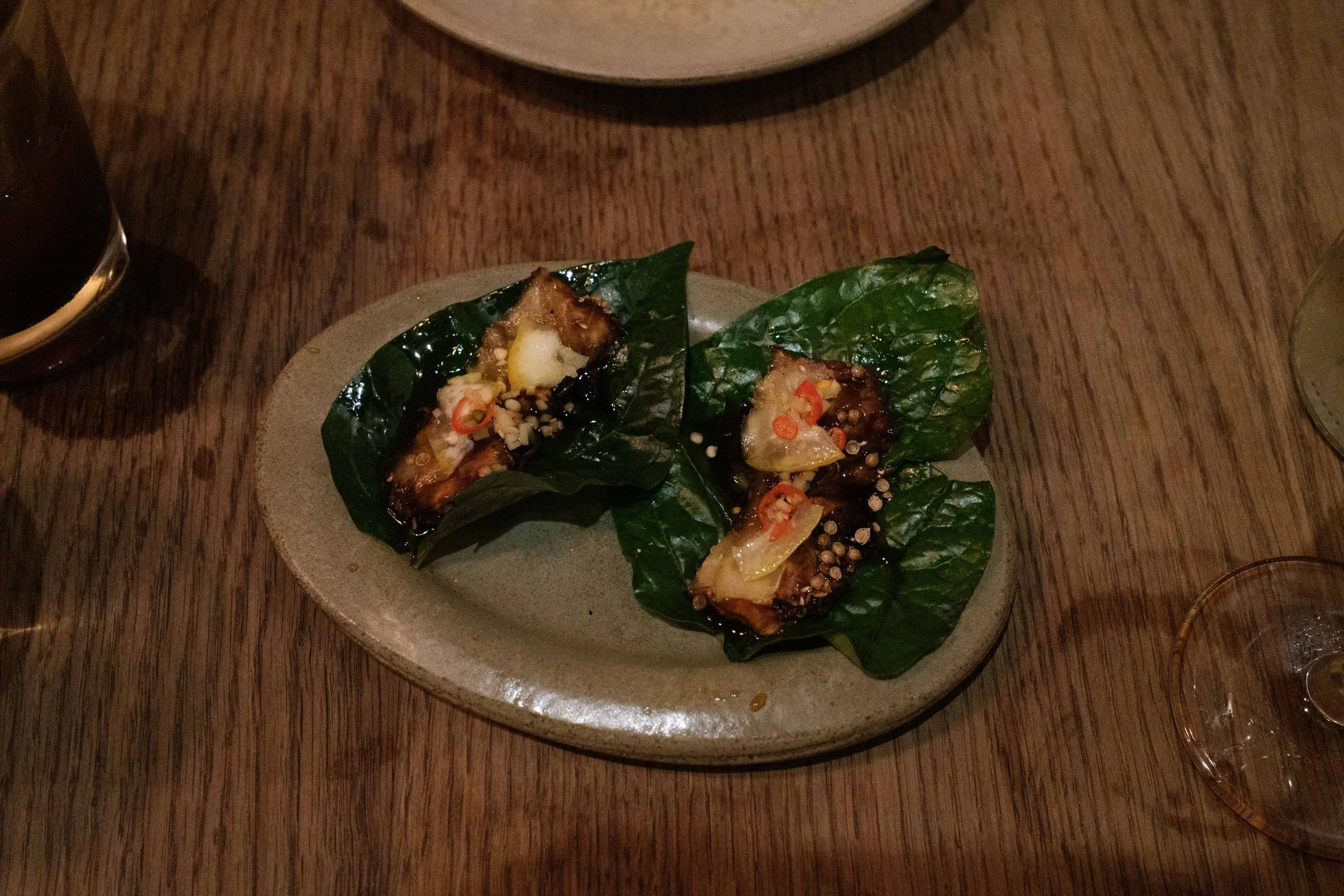 The Miang of Barbecued Celeriac set the tone perfectly. A small, one-bite wrap eaten in a leaf, but packed with flavour and heat. It’s sharp, spicy, and immediate. Exactly the kind of opening that tells you what this kitchen is about.