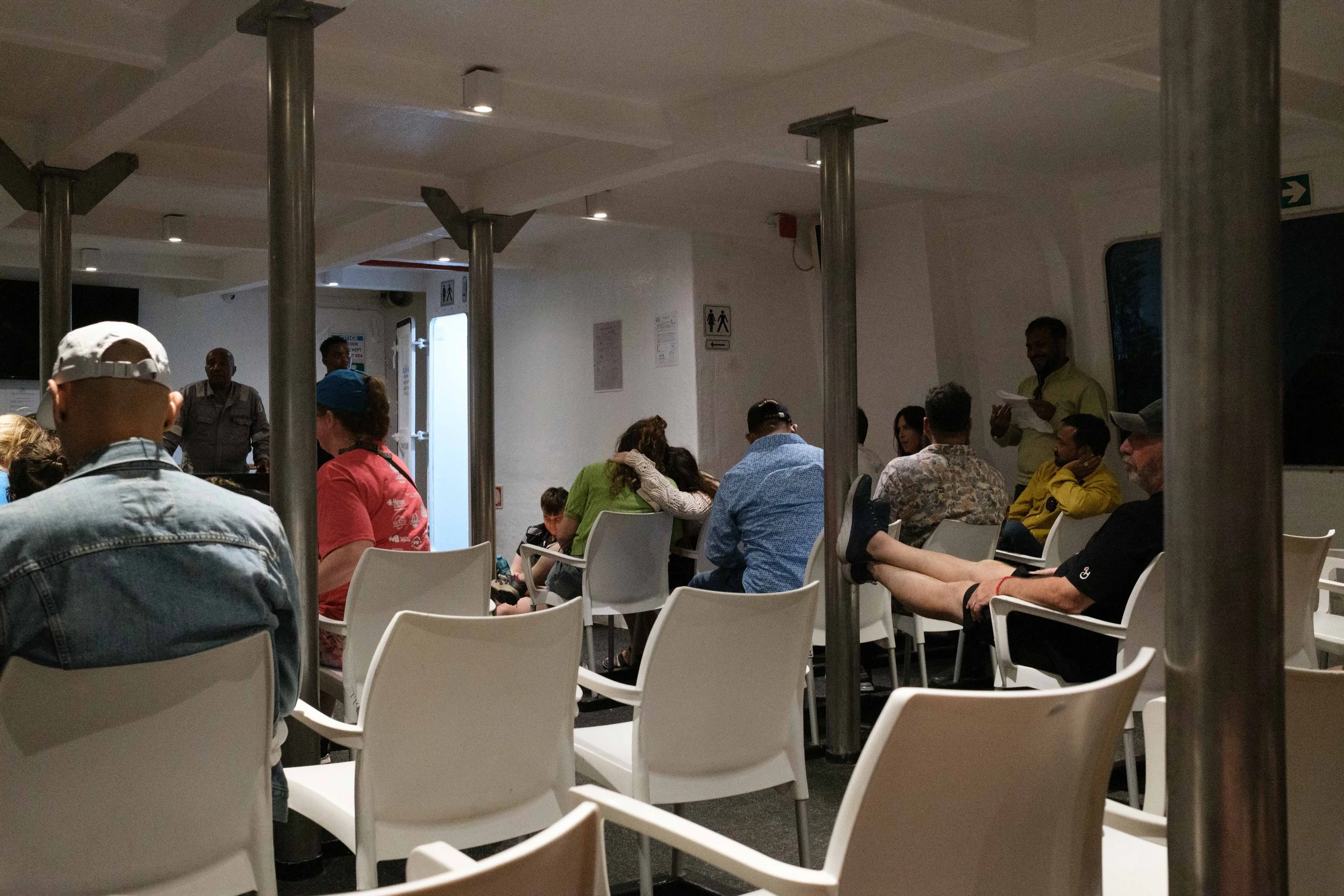 As the sun went down, the waves picked up and the boat rocked heavily. Many passengers were uncomfortable or seasick, and a few were clearly frightened. Being from an island myself, I felt fine as long as I could see the horizon, but it was a reminder that conditions can change quickly out at sea.